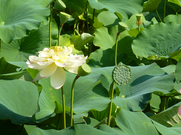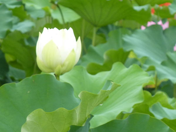 品種も色々あるようで、花弁が白い蓮も咲いていました。