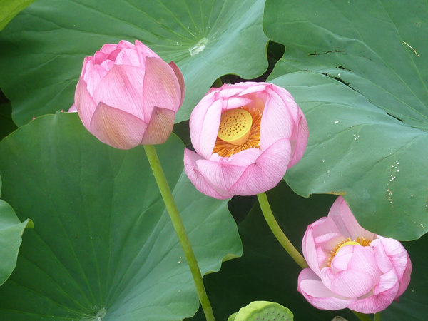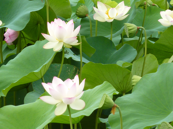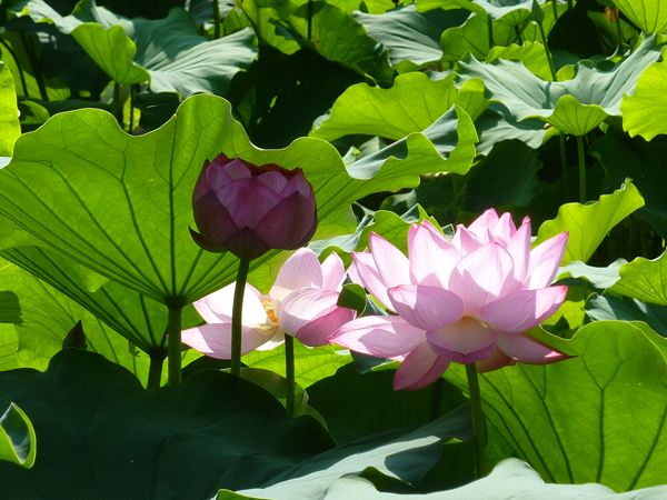 かなり日が照ってきました; 暑いですが蓮の花たちは凛と咲いて綺麗です。